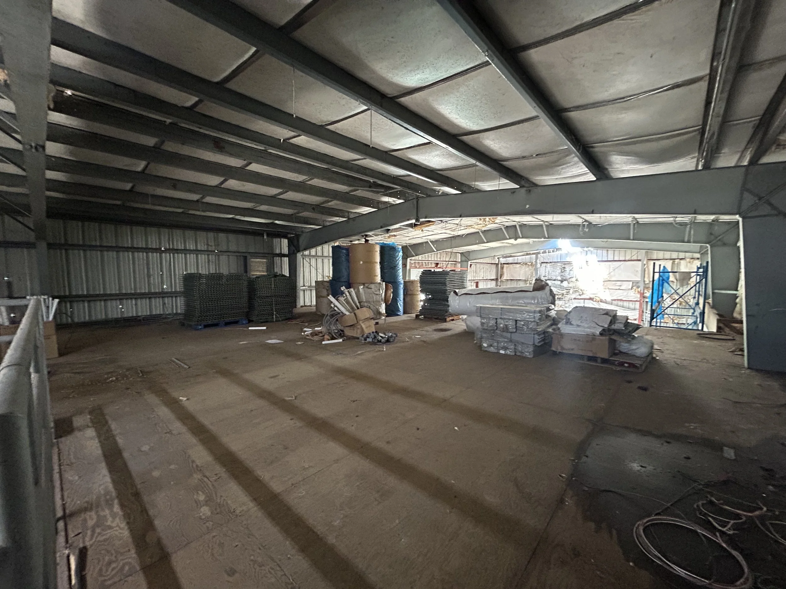 Warehouse space for rent: 4,800 sqft each. Roll down doors with 2 entrance doors on each side with metal security door. $ .80 sqft