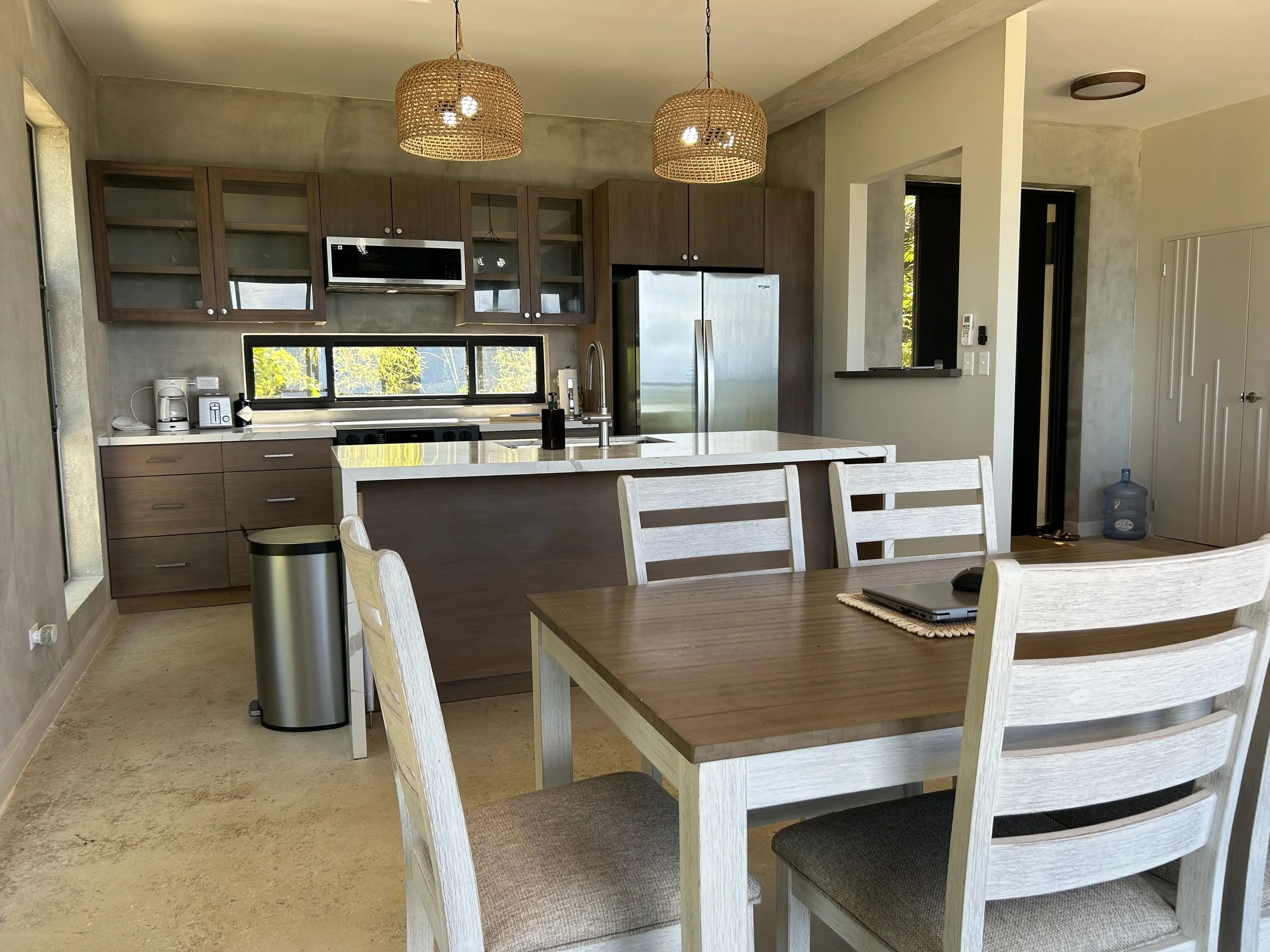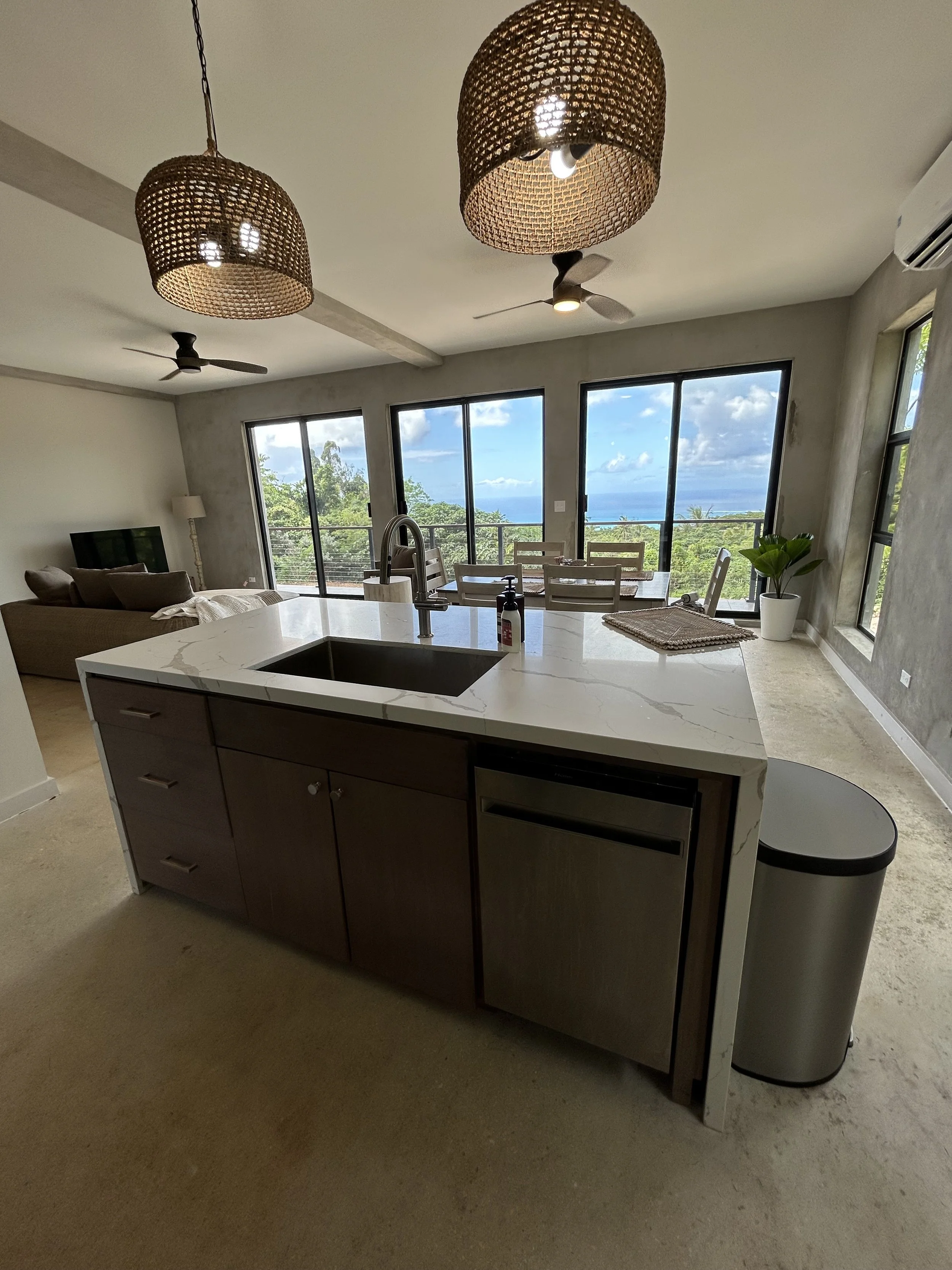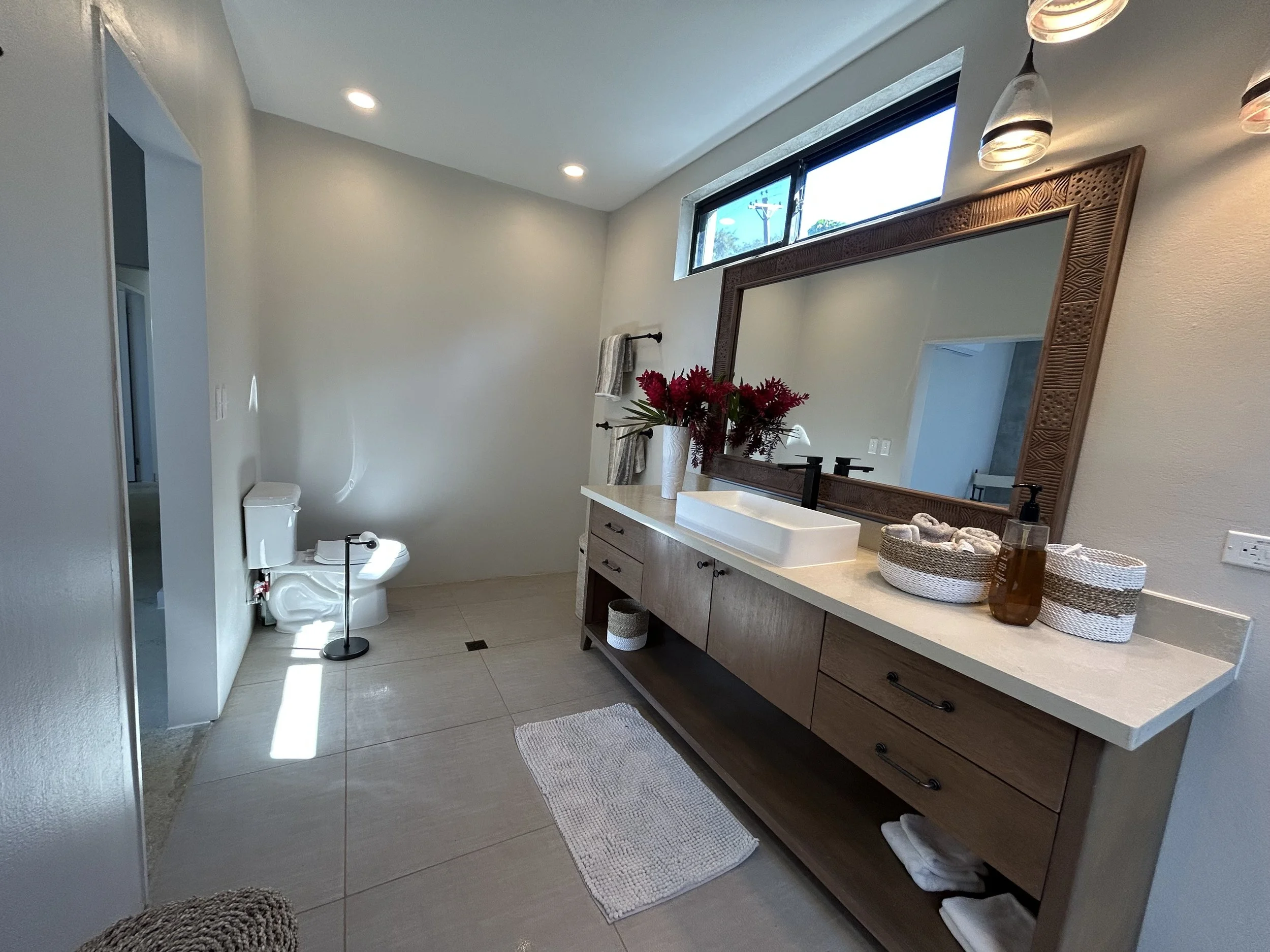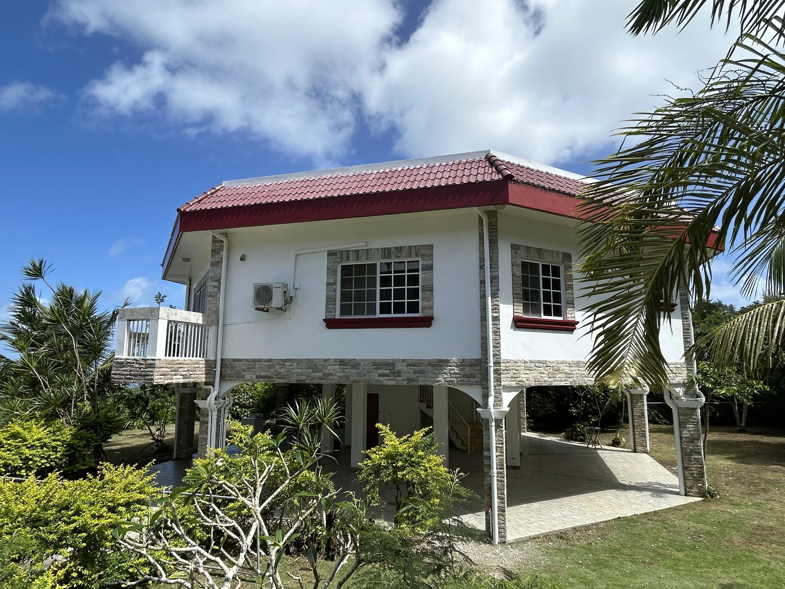 Newly built, fully concrete home, 2 bed, 2 bath, with new appliances, fully furnished. Breathtaking ocean view, 2 car carport with washer/dryer. Primary bedroom with walk in closet & bathroom, air conditioning in each room (living room A/C is solar). 10,000 gallon water tank. Monthly yard service included in the rent. Living space: 1,200± sq ft. Back up generator for typhoons. $ 2,000/month, not including power, water and trash service. Located on Mt. Tapochau, Saipan.