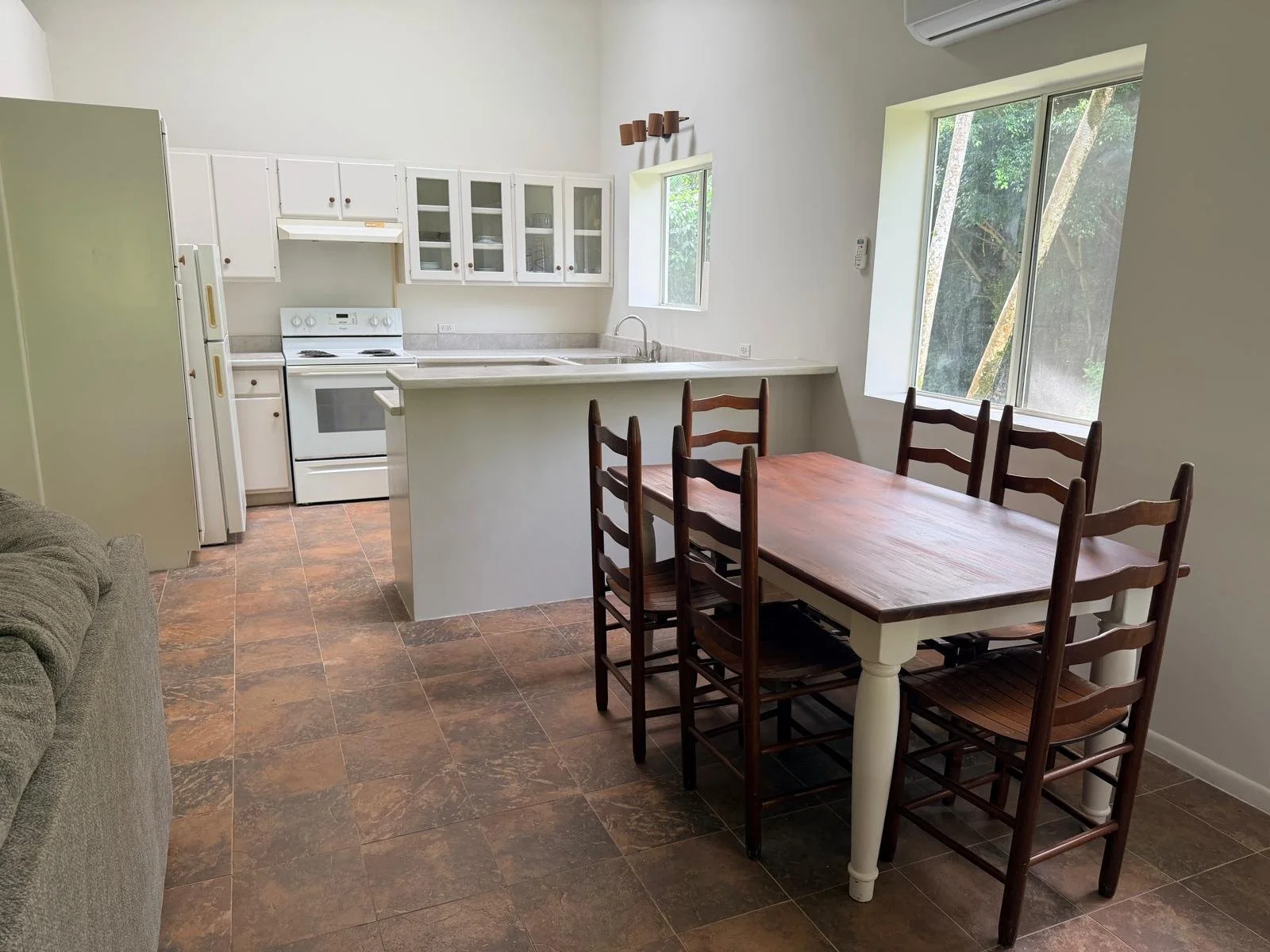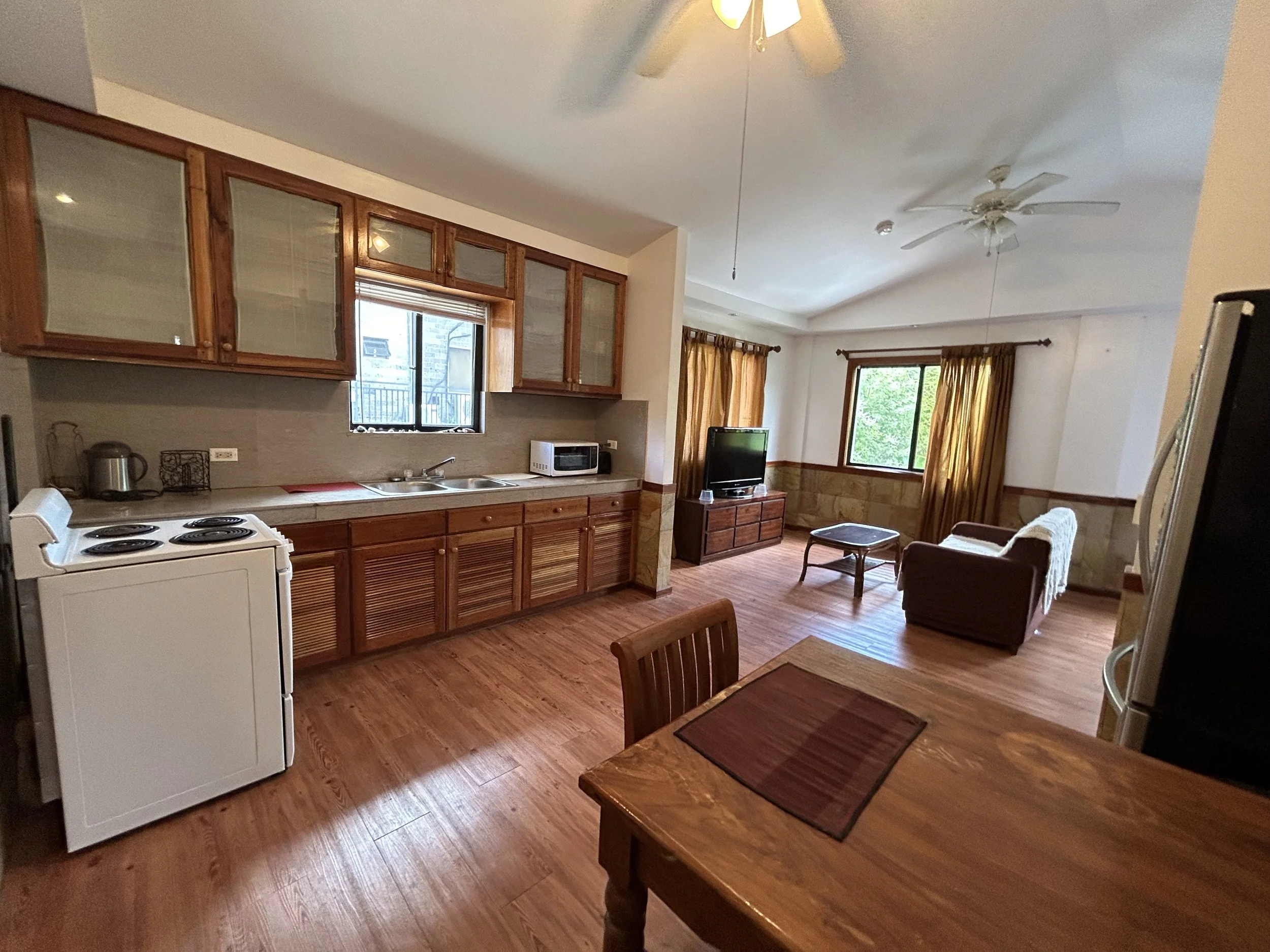 Option for attached guest house/apartment: Newly renovated 1 bed 1 bath furnished apartment with kitchen, living room and bedroom- with new bed, new refrigerator and air-conditioning. $ 600/month not including power and water, separate power meter, etc1 bed Located on the ground floor, separate driveway and entrance, contact us for more info and pictures